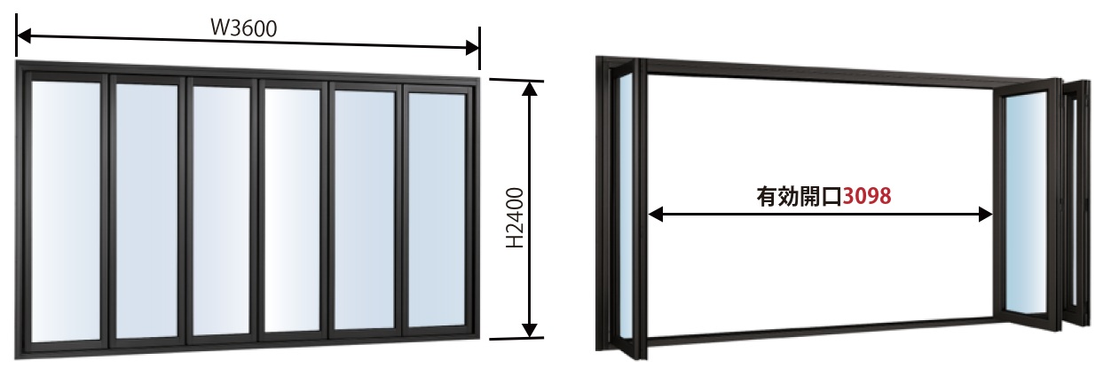 引き違い窓の倍以上の有効開口を手軽に確保できます。