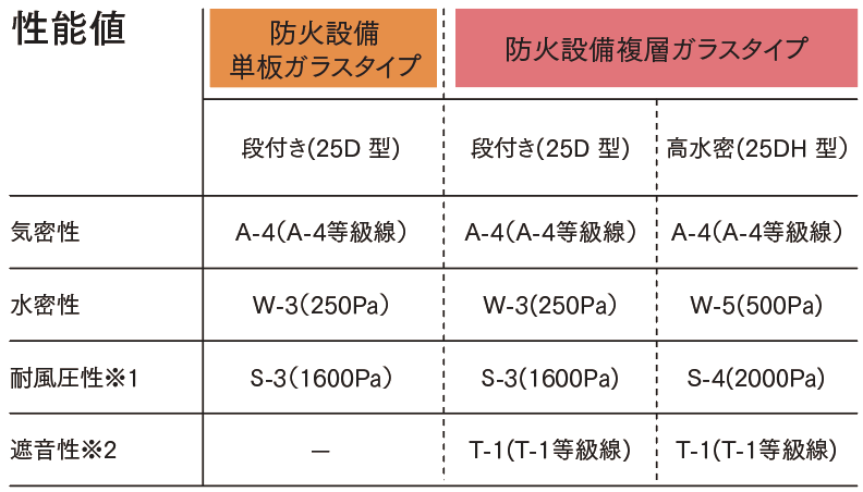 ※ W・H寸法により性能が異なります。詳細は設計資料をご確認ください。
